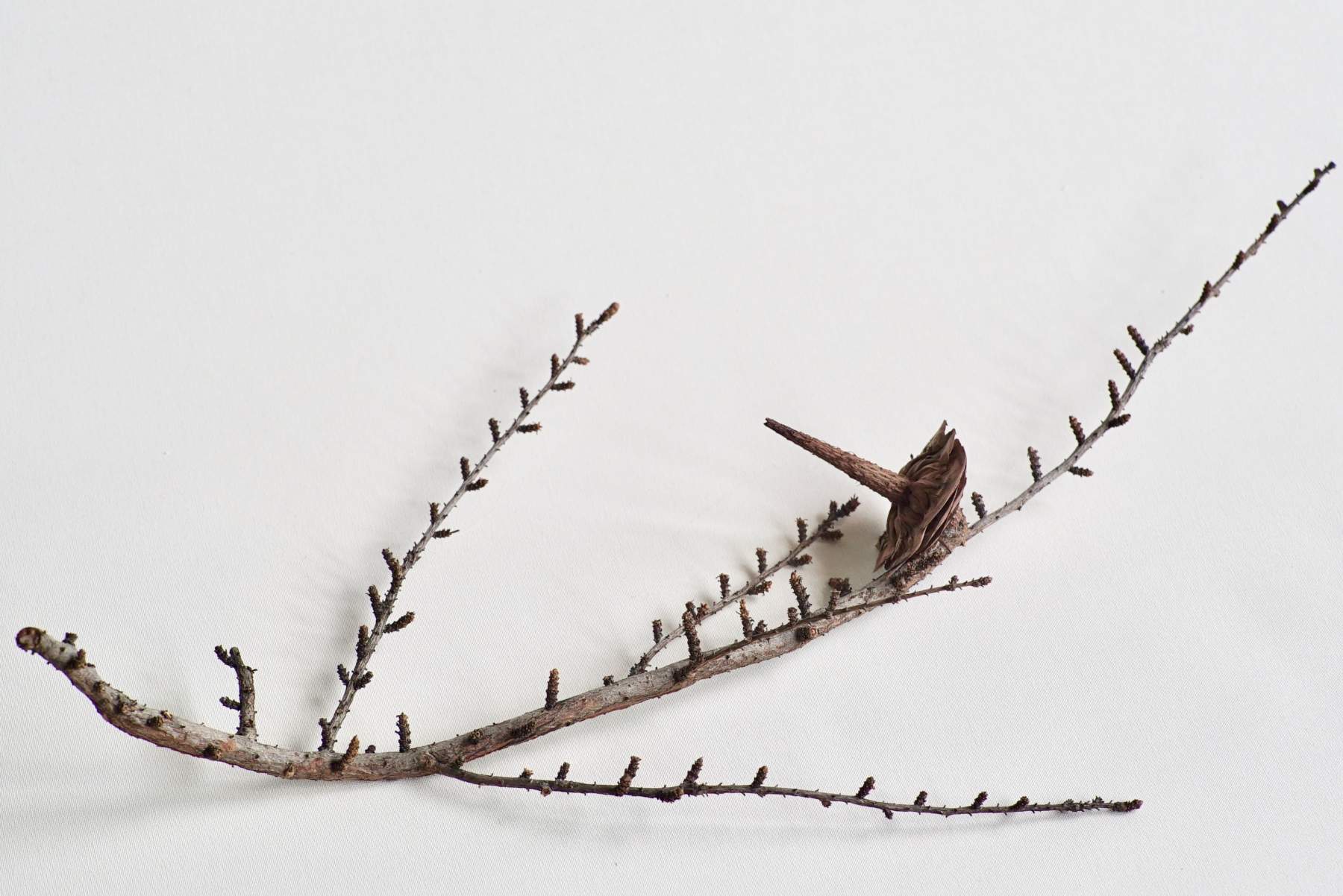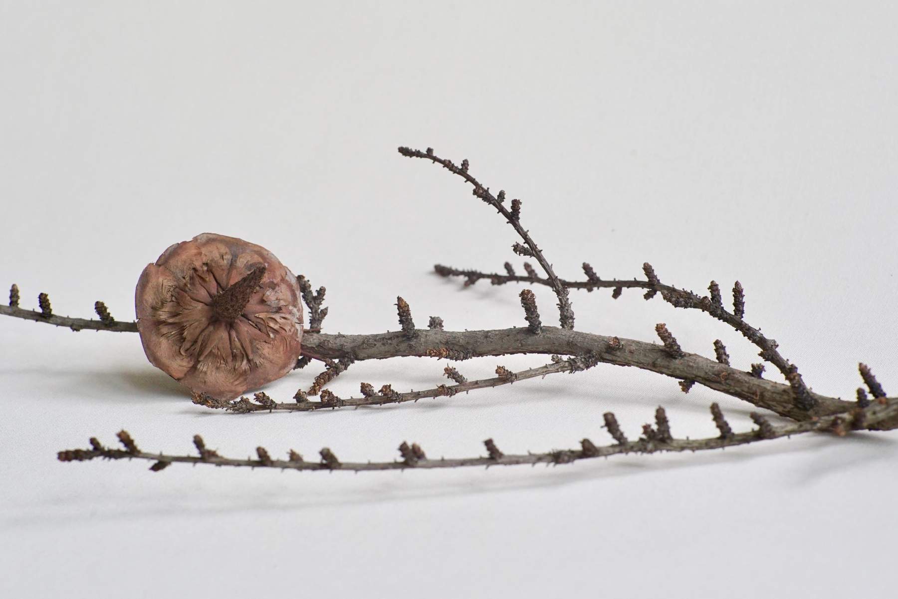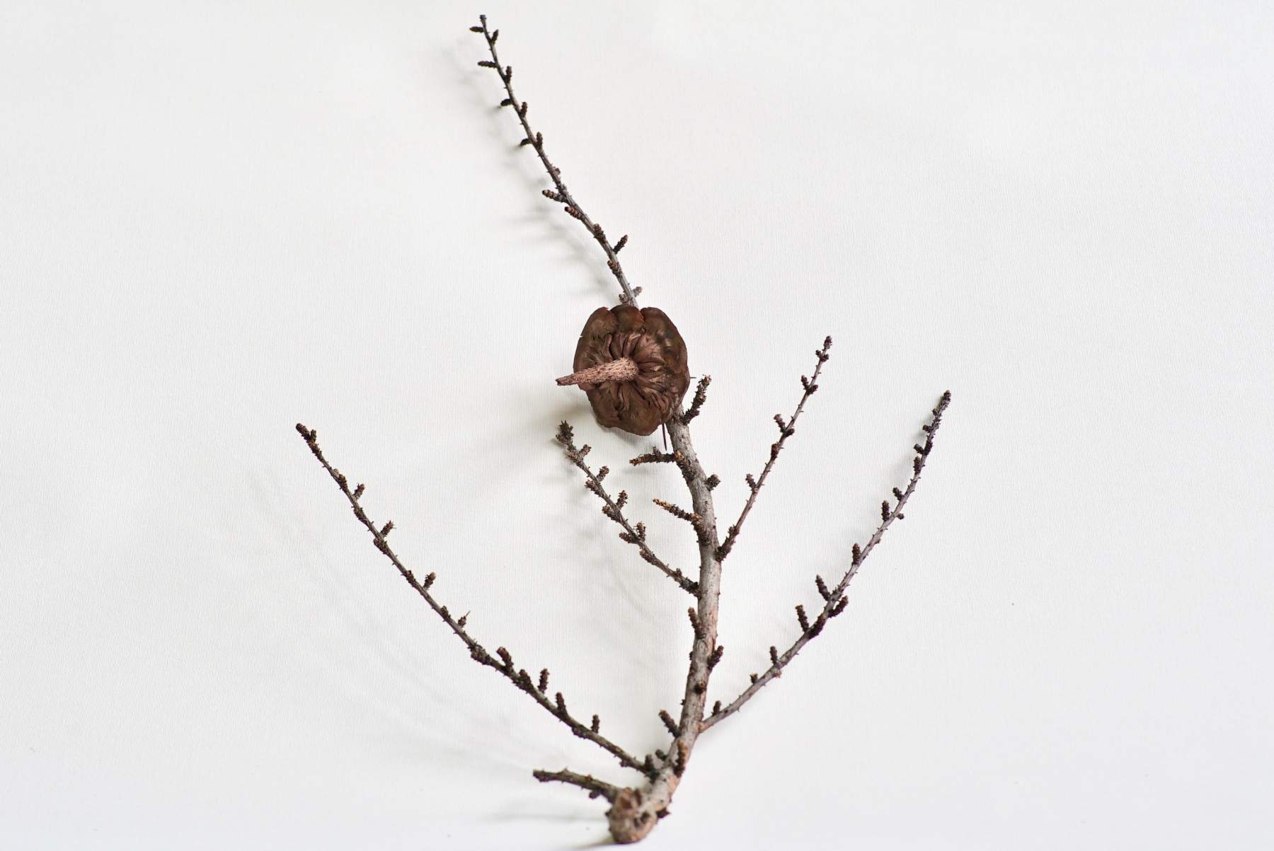 A small twig of Larix decidua can carry a whole season in it. The European larch is one of the few deciduous conifers, shedding its needles each autumn and standing bare through winter. On a slender, pale twig, you’ll often see two kinds of shoots: long shoots that shape the branch, and short spur shoots where soft, bright-green needles emerge in tidy clusters each spring. A cone may still cling to the twig; small, woody, and egg-shaped, often remaining in place for years.