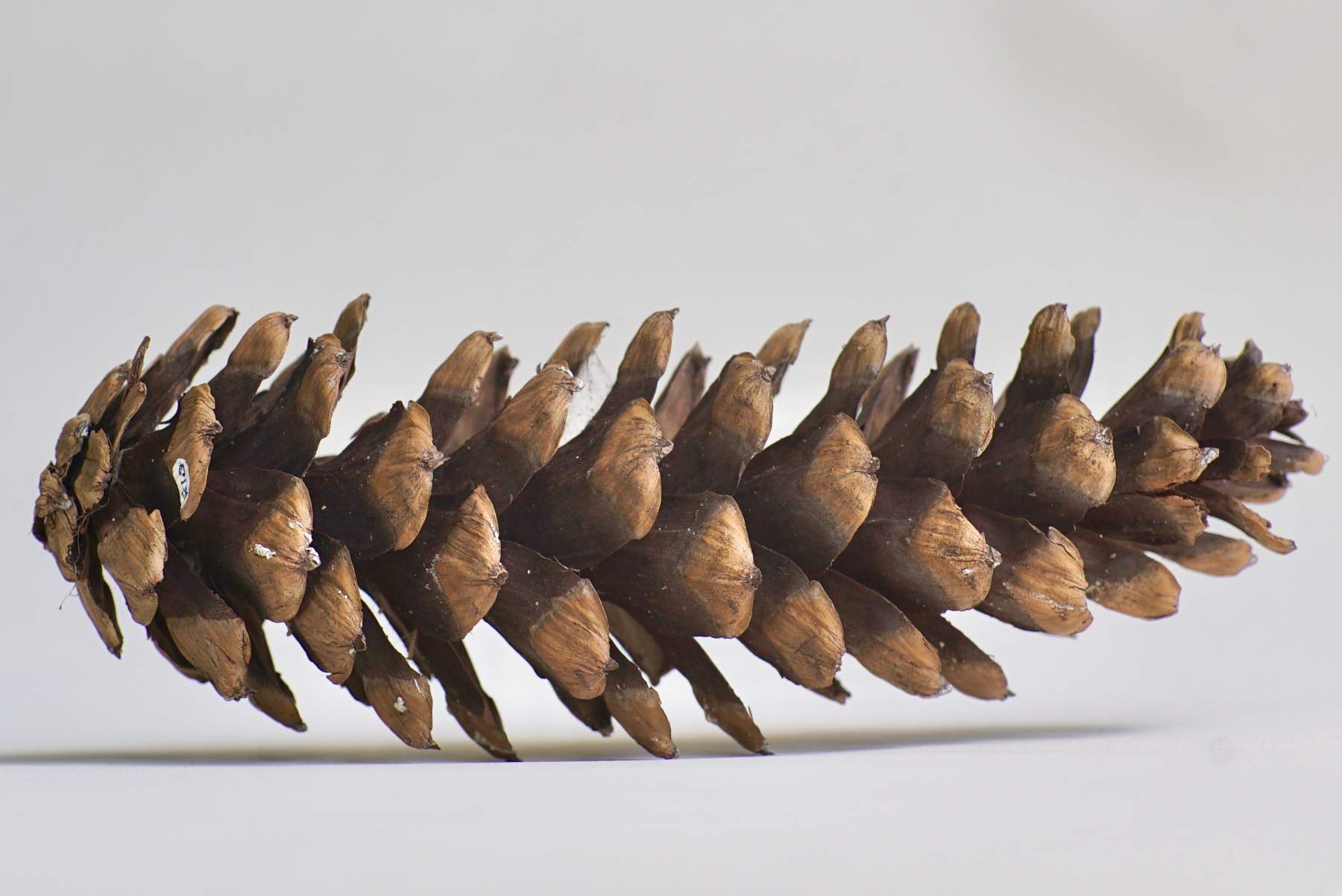 Cones: Long and narrow, 12–30 cm, banana-shaped, with thin scales