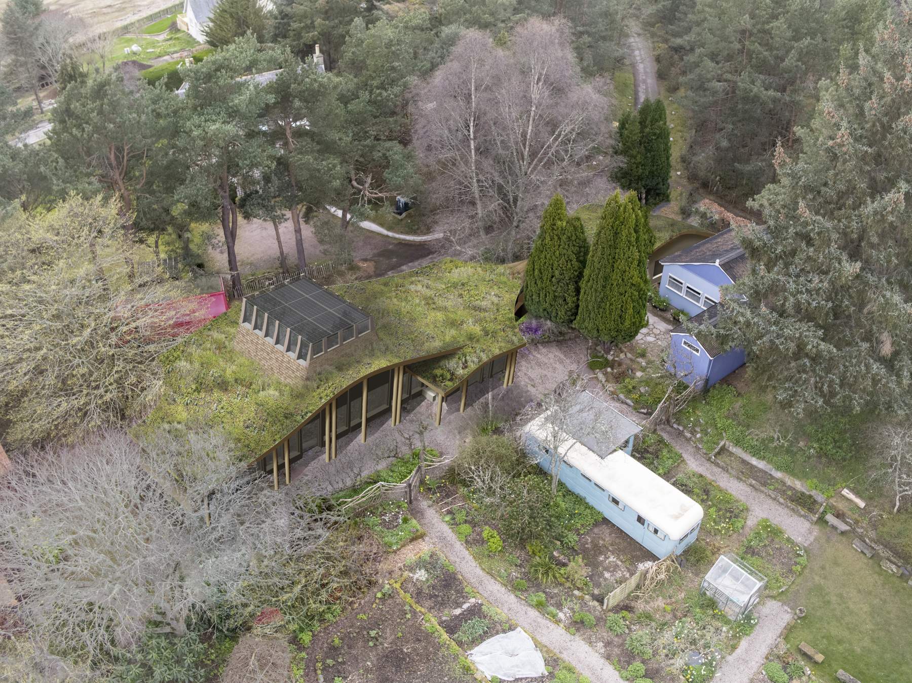 The Findhorn Foundation educational charity is embarking upon a programme of development and renewal of its campus of structures at The Park in Findhorn, Scotland. Located in the Original Garden area, at the heart of the community, this project proposes five new guest accommodation buildings and two administrative buildings for the organisation. The new buildings replace those that have gradually become unusable as they were temporary chalet and bungalow structures that, despite their intended service life, have been made to last for more than 50 years. The renewal is an opportunity for the Foundation to build buildings bespoke to their needs and in alignment with their core values of inner listening, co-creation with nature and work as love in action.