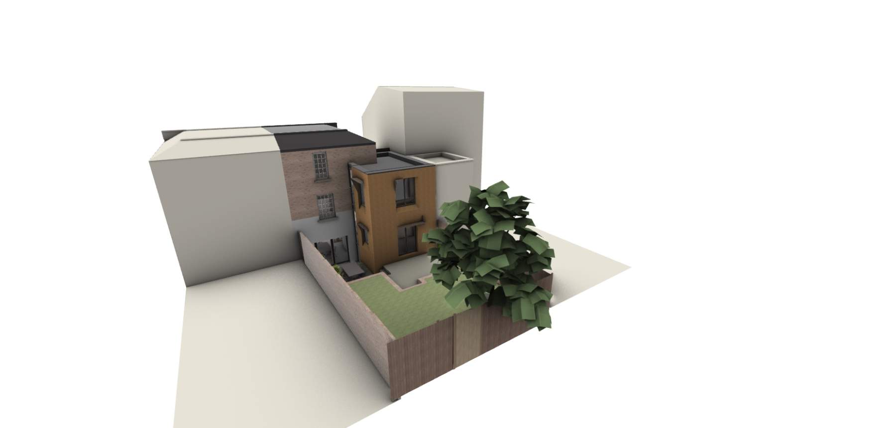 Party wall optimisation: Close the existing 10cm gap at the rear boundary to improve thermal performance and reduce heat loss.